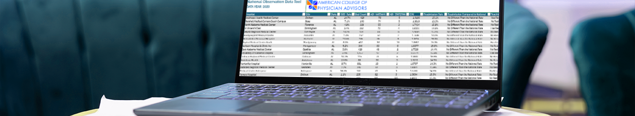 Focusing exclusively on traditional (Fee-for-Service) Medicare patients, this tool allows users to explore national and local trends in observation practice using publicly available Centers for Medicare and Medicaid Services (CMS) data. This National Observation Data Tool is available for ACPA members.